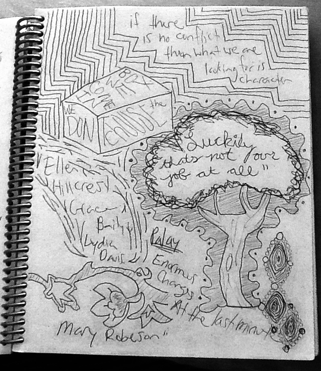 What follows is just a random list of some of the things I wrote down and some doodles from the margins.