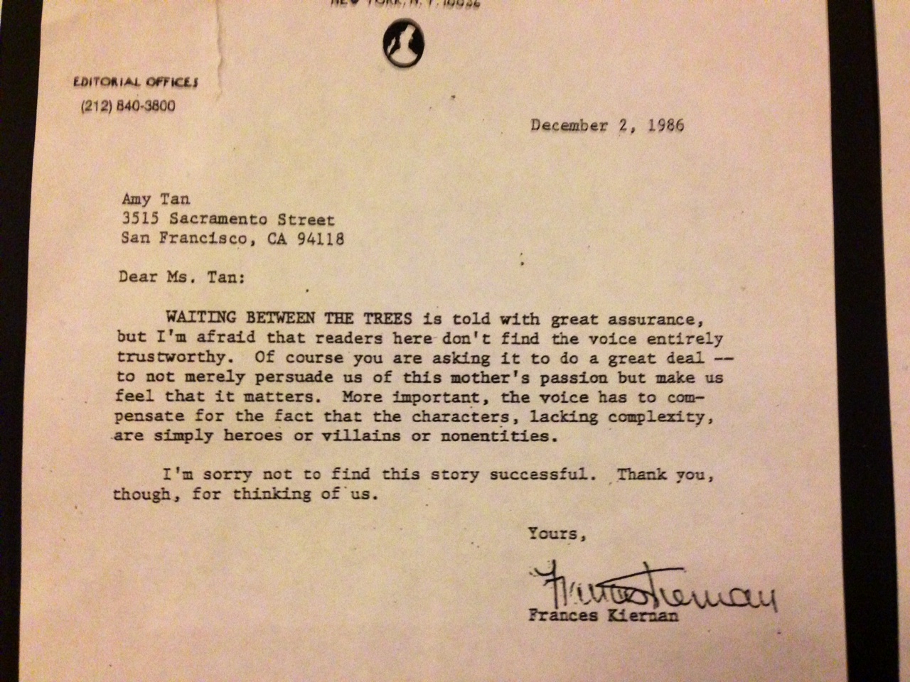 Amy Tan was working as a business writer the first time she attended the Squaw Valley Writers Conference. It was 1985 and she was thirty-three years old. The Joy Luck Club was published in 1989. File Under: Things That Make Me Feel Better.