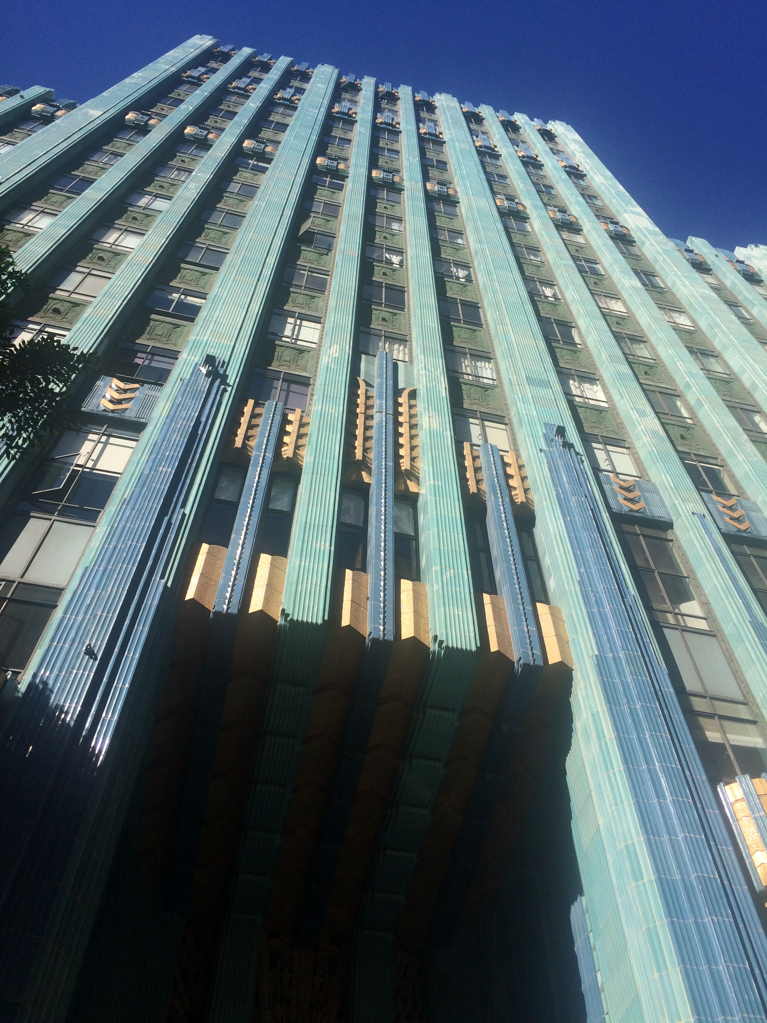 3- Blue and green. There are two technicolor skyscrapers in DTLA: the Eastern Colombia building and the Sun Realty building, both shine with an unreal brightness, odd and foreign next to the other buildings as though a tornado had just dropped them down from The Emerald City. [For another building that looks like it’s been transplanted from a far away land see Oviatt’s building and then look at photos from the 1925 world’s fair in Paris where he copied it’s designs].