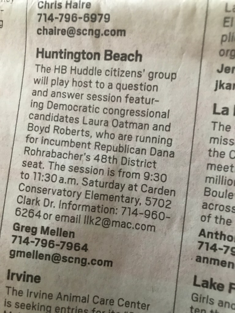 IMG_0094 Published May 15, 2019 at 3024 × 4032 in Are you there blog? It’s me Margaret… More volunteer work! HB Huddle hosted a series of Q&A’s with congressional candidates.